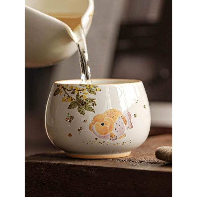 喜可xekoro草木灰金魚精緻女士主人杯單杯陶瓷家用茶室待客喝茶杯功夫泡茶具