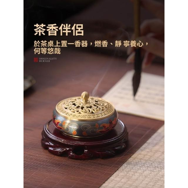 喜可xekoro蓮花中式銅香爐家用沉香琺瑯彩室內盤香薰爐香篆擺飾焚香上香薰爐