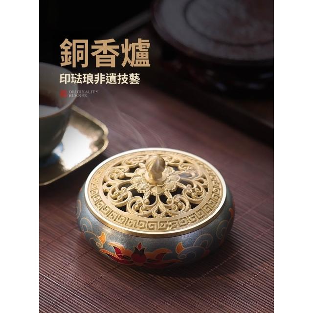 喜可xekoro蓮花中式銅香爐家用沉香琺瑯彩室內盤香薰爐香篆擺飾焚香上香薰爐