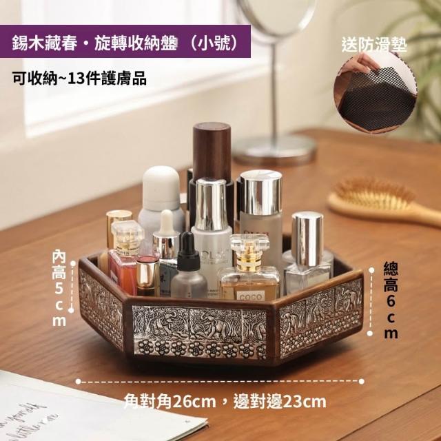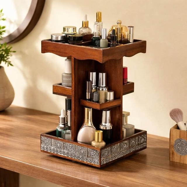喜可xekoro「全實木三層旋轉化妝品收納架|360°旋轉多層分區整理|高質感木質化妝桌收納」