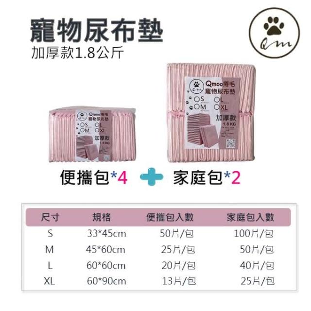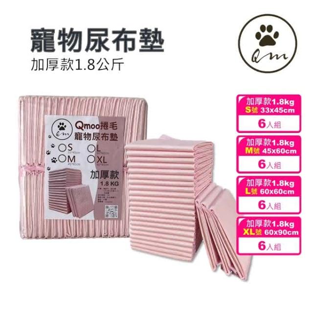 QMoo捲毛寵物尿布墊1.8kg加厚款6包組(4種尺寸/便攜包/家庭包)