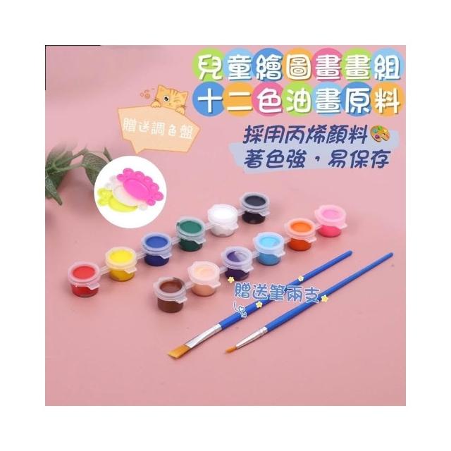 12色油畫顏料 高品質丙烯顏料 壓克力顏料 繪圖組 水彩筆 水性顏料