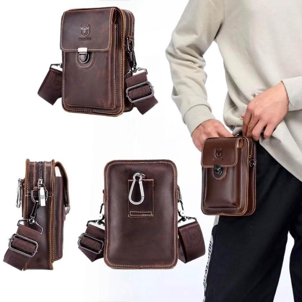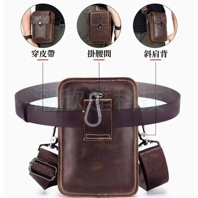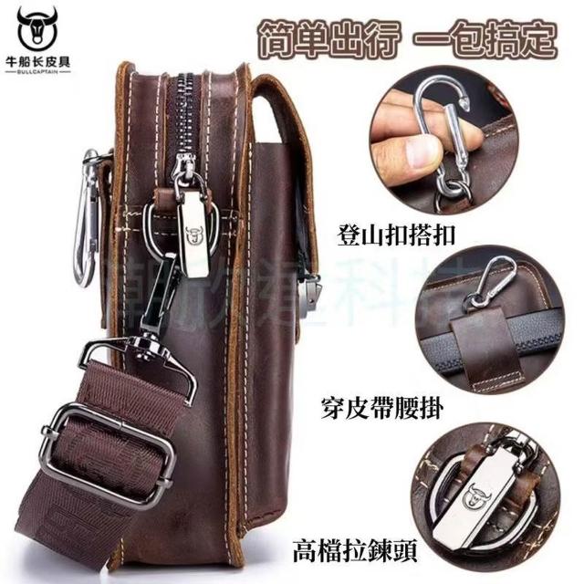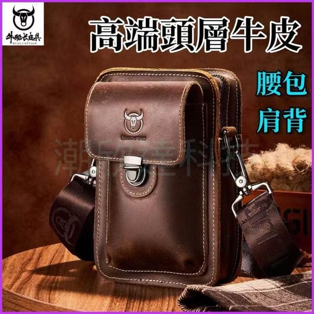 台灣公司現貨/高檔頭層牛皮手機包/品牌牛船長真皮手機腰包/牛皮手機肩背包/真牛皮腰包/皮革腰包/瘋馬牛皮手機掛包