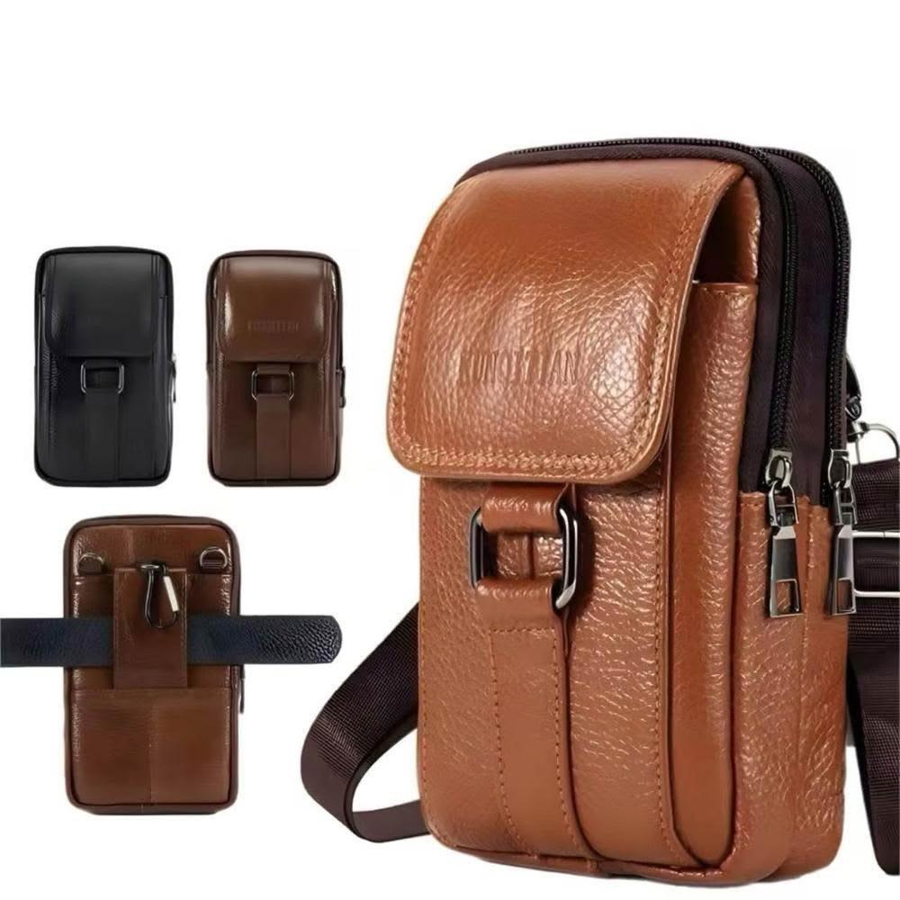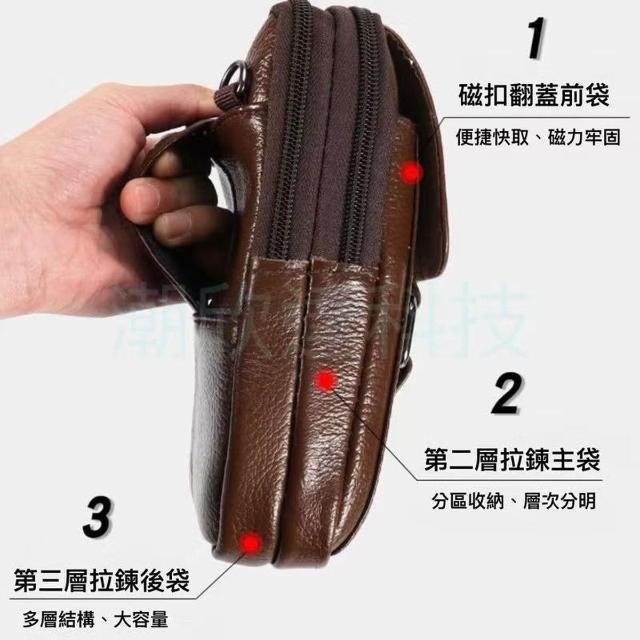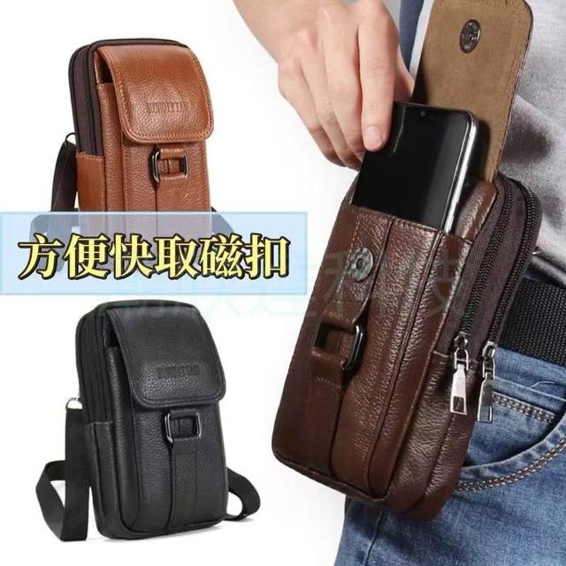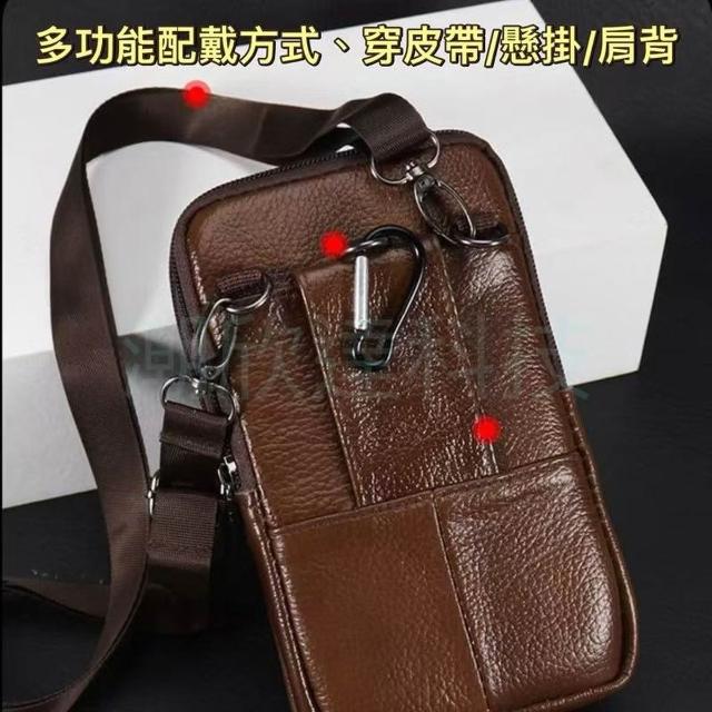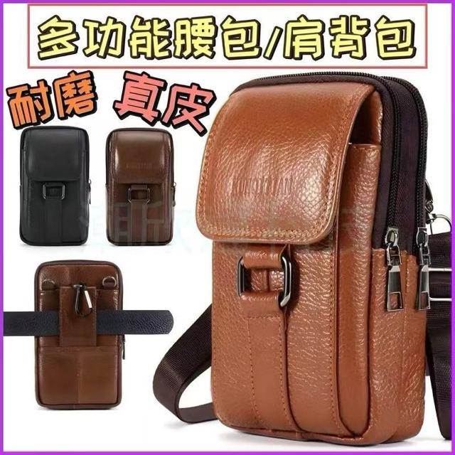 台灣公司現貨/精選真皮多功能配戴腰包、肩背包/手機腰包、穿皮帶、懸掛、肩背/多層大容量男生手機腰包、工作休閒手機包