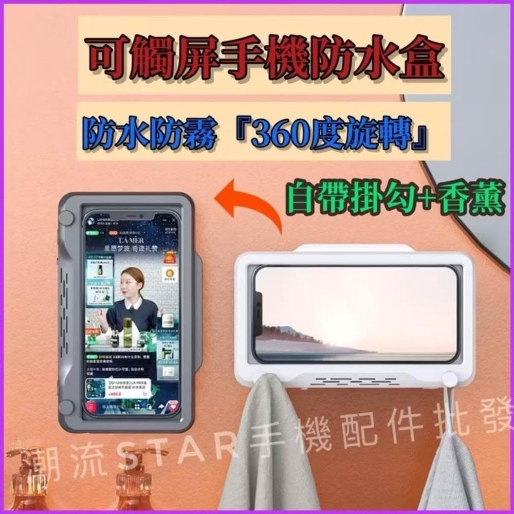 台灣公司現貨/可旋轉360度手機防水盒支架/浴室手機架/防水手機支架/可觸控防水手機盒/浴室香薰/廁所手機架