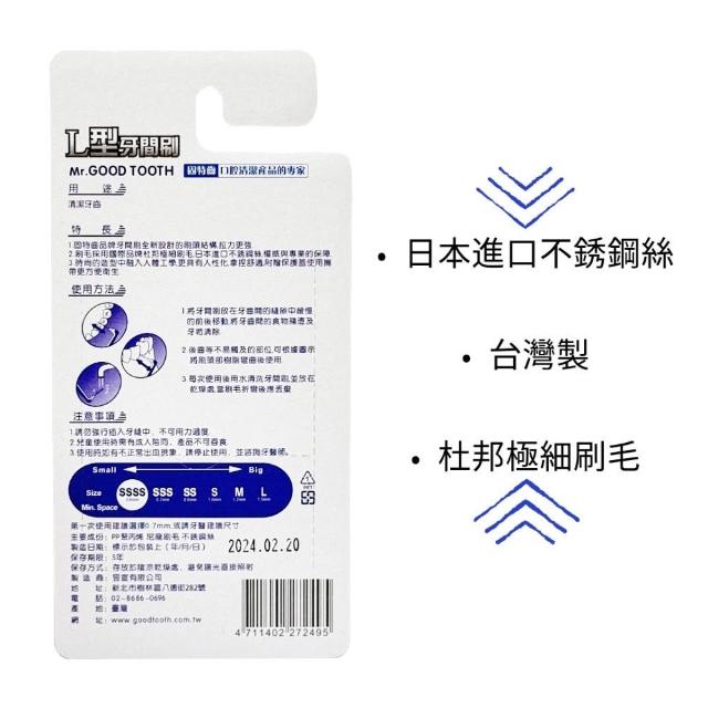 固特齒 L型牙間刷 10支裝 台灣製 日本進口不鏽鋼絲 杜邦刷毛 齒間刷 牙齒矯正用 Mr.GOOD TOOTH