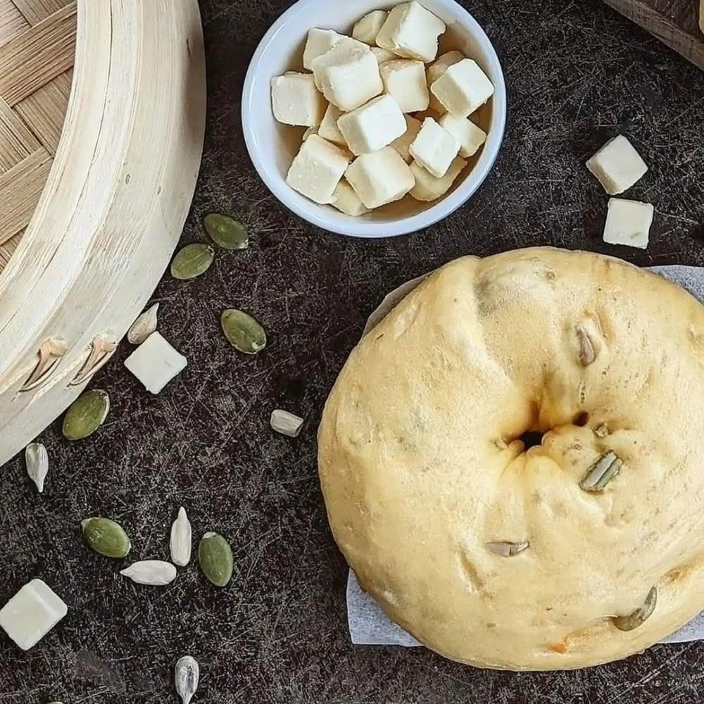 花漾饅頭屋南瓜乳酪軟Q饅貝果(奶素)2入獨立包裝 低糖無油 天然老麵發酵 早餐點心