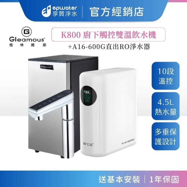 Gleamous 格林姆斯K800 廚下型冷熱雙溫觸控出水飲水機 (搭A16-600G直出RO淨水器) 贈全台安裝服務