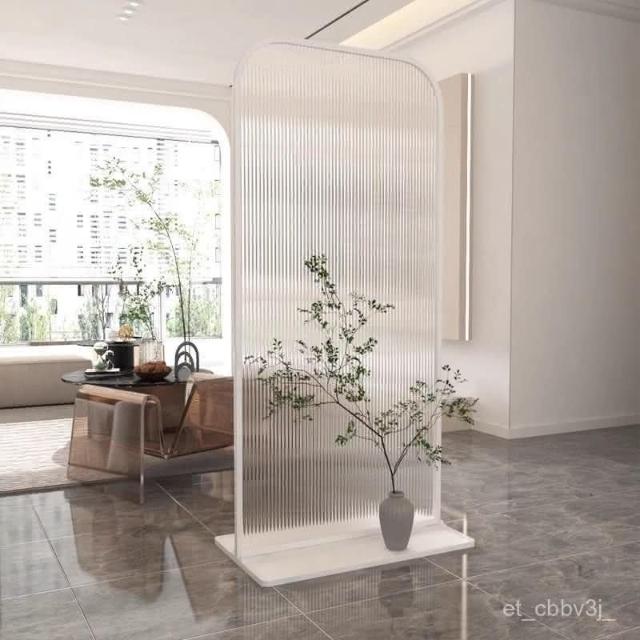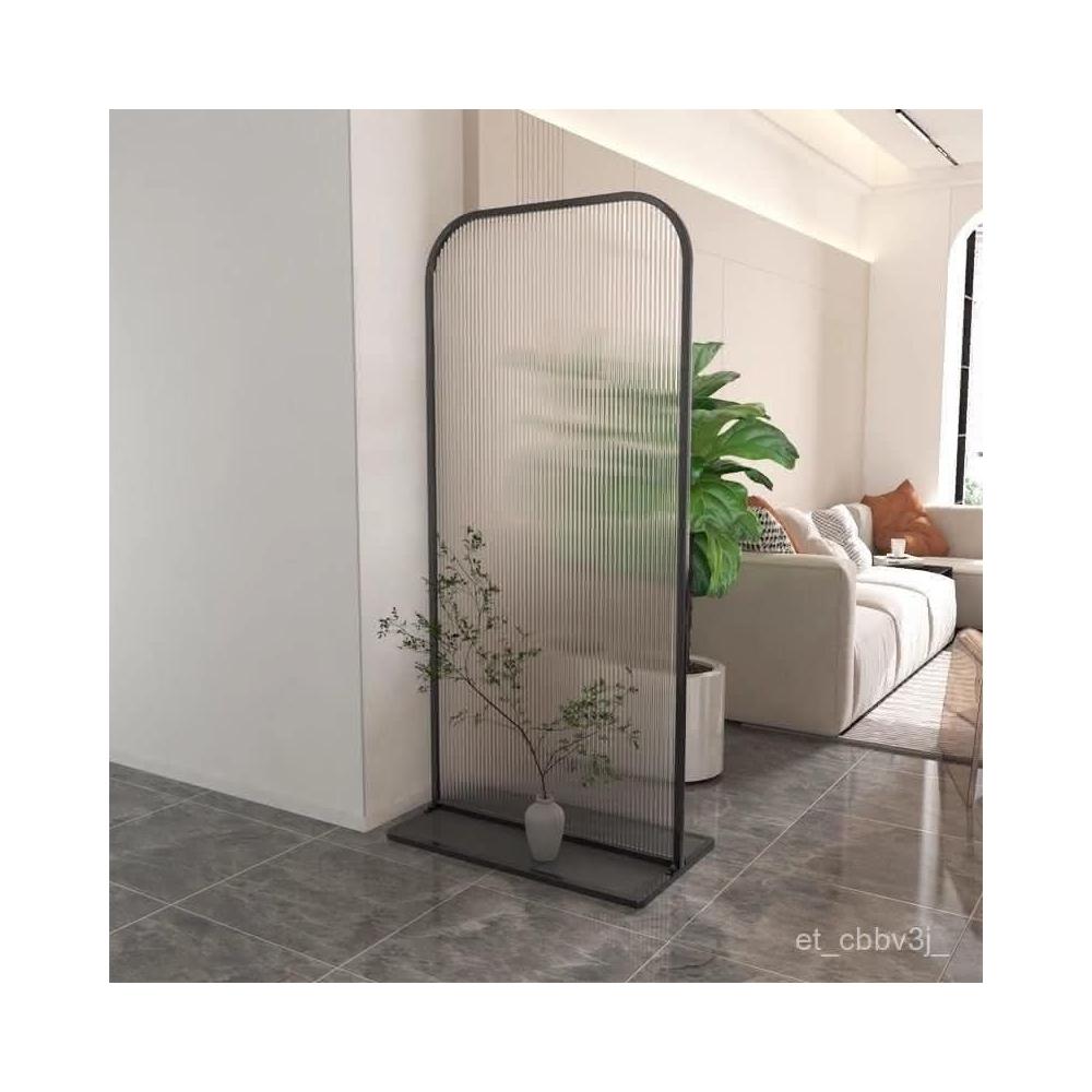 熱賣 可移動立式長虹玻璃屏風 免打孔屏風 現代簡約隔斷 進門/入戶/客廳/玄關屏風隔間 沙發邊輕奢屏風 奶油風隔闆