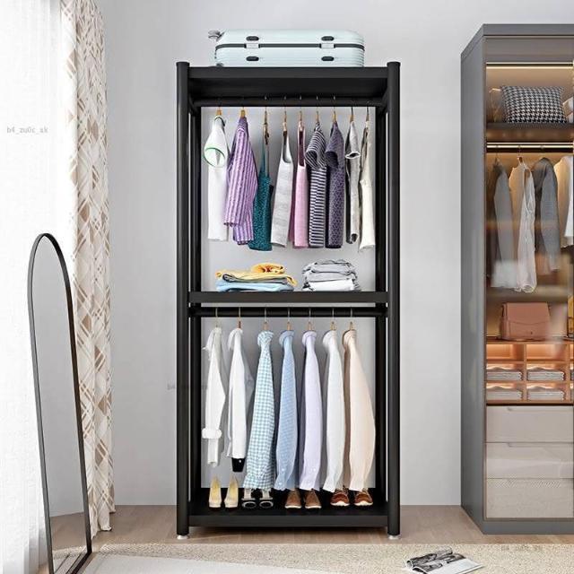 熱銷/免運 上下雙層掛衣架 臥室落地掛衣架傢用簡易組閤衣櫃衣帽間鞋架子房間一體貨櫃 收納架 出租房置物架 衣帽架