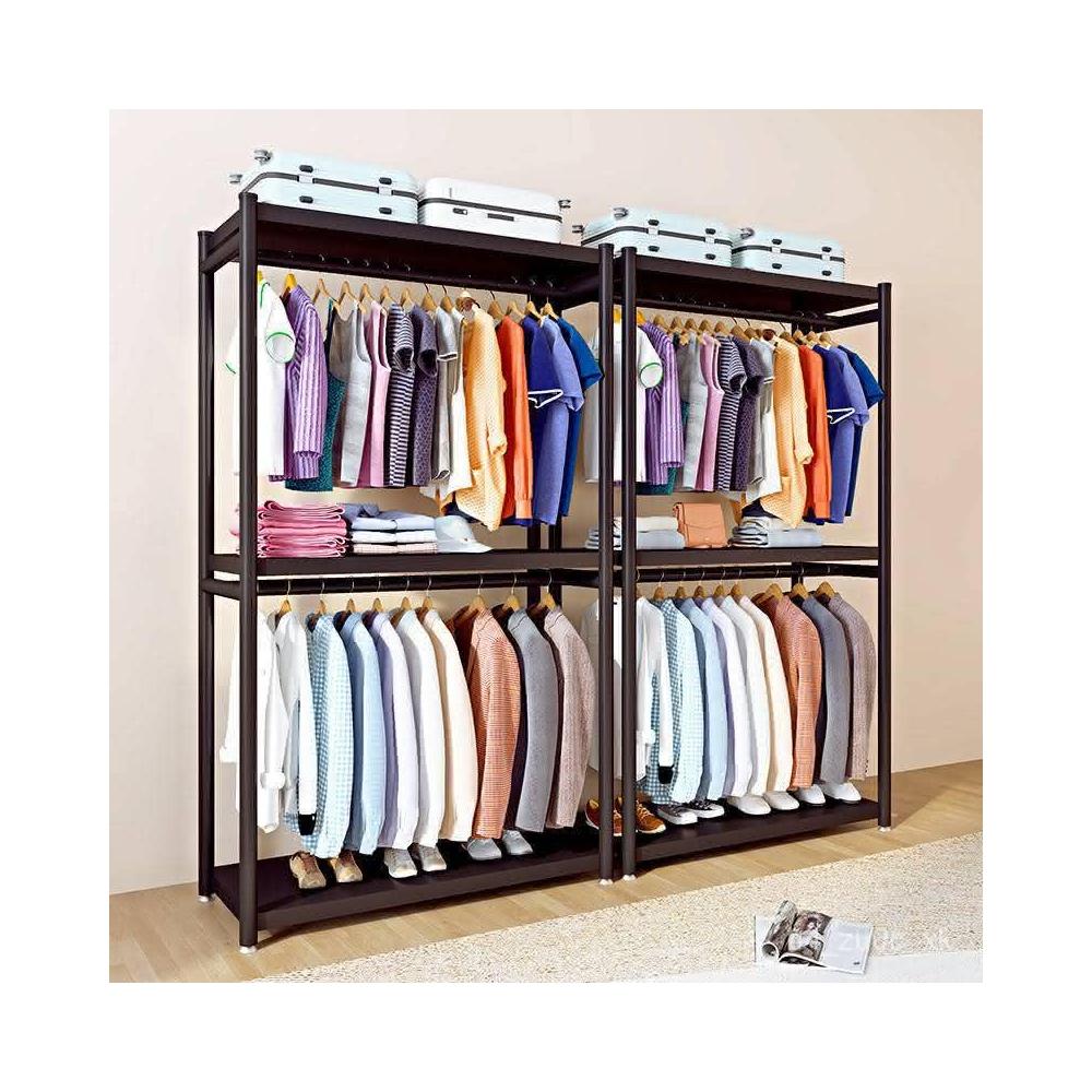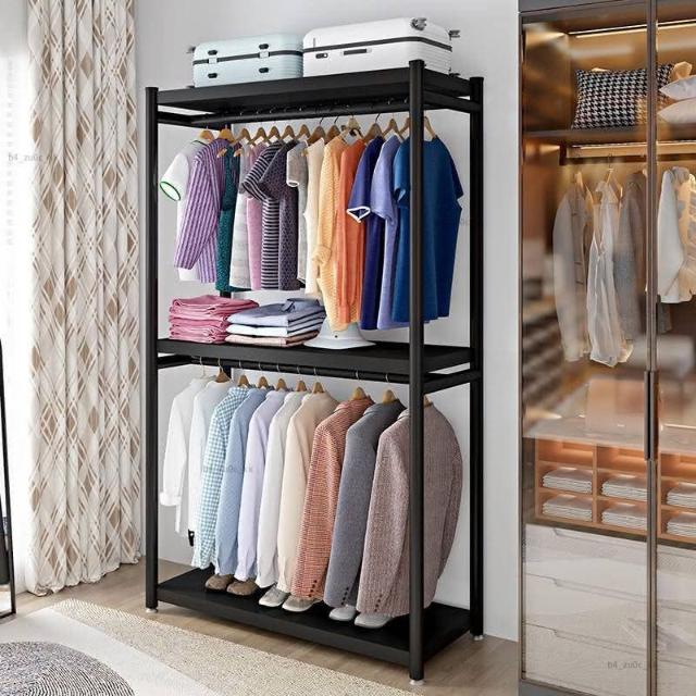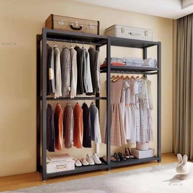 熱銷/免運 上下雙層掛衣架 臥室落地掛衣架傢用簡易組閤衣櫃衣帽間鞋架子房間一體貨櫃 收納架 出租房置物架 衣帽架