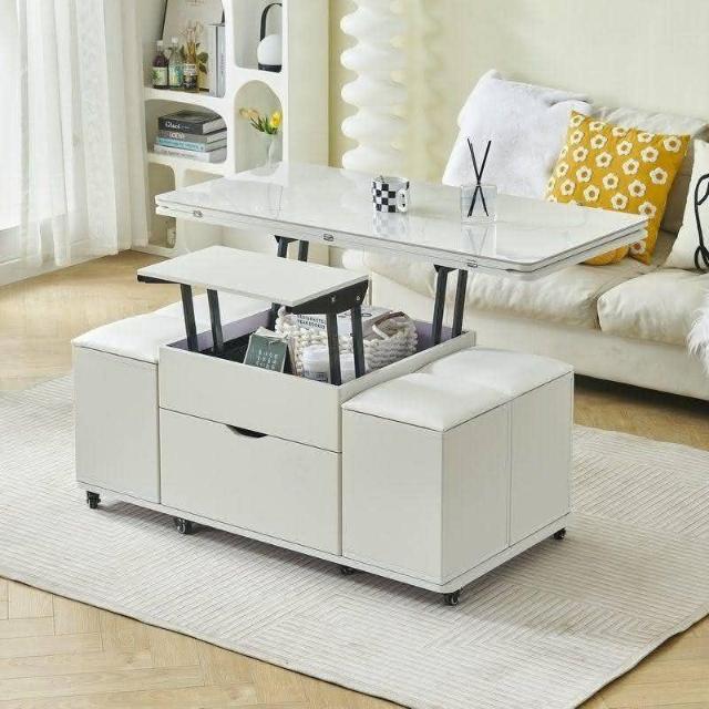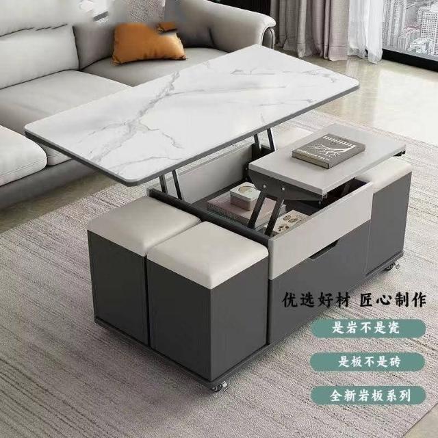 全網銷量第一 岩板多功能茶几小戶型茶具桌家用餐桌升降一體茶臺客廳收納桌子升降茶几桌可移動茶機桌