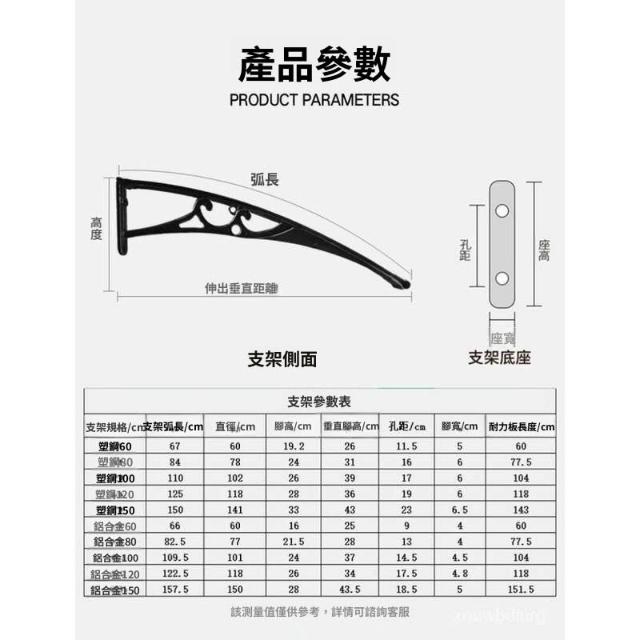 可定製 💥遮雨篷戶外 窗戶陽臺遮雨棚 支架遮陽雨 家用屋簷防雨蓬 無聲耐力闆 擋雨棚 防雨罩