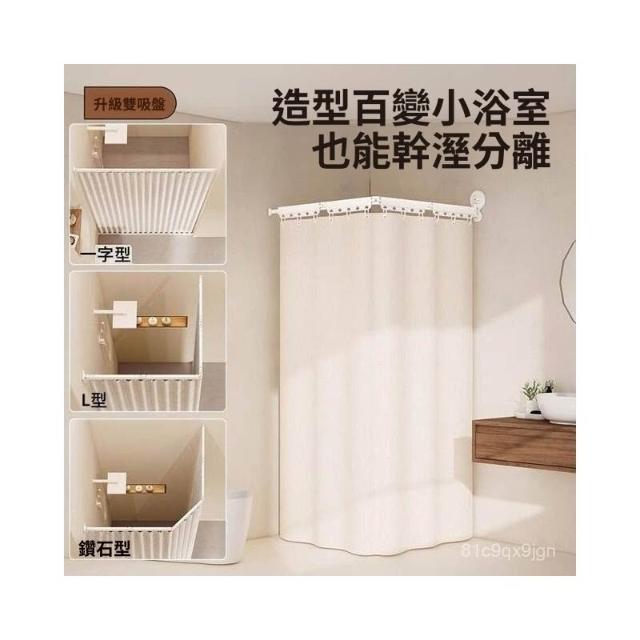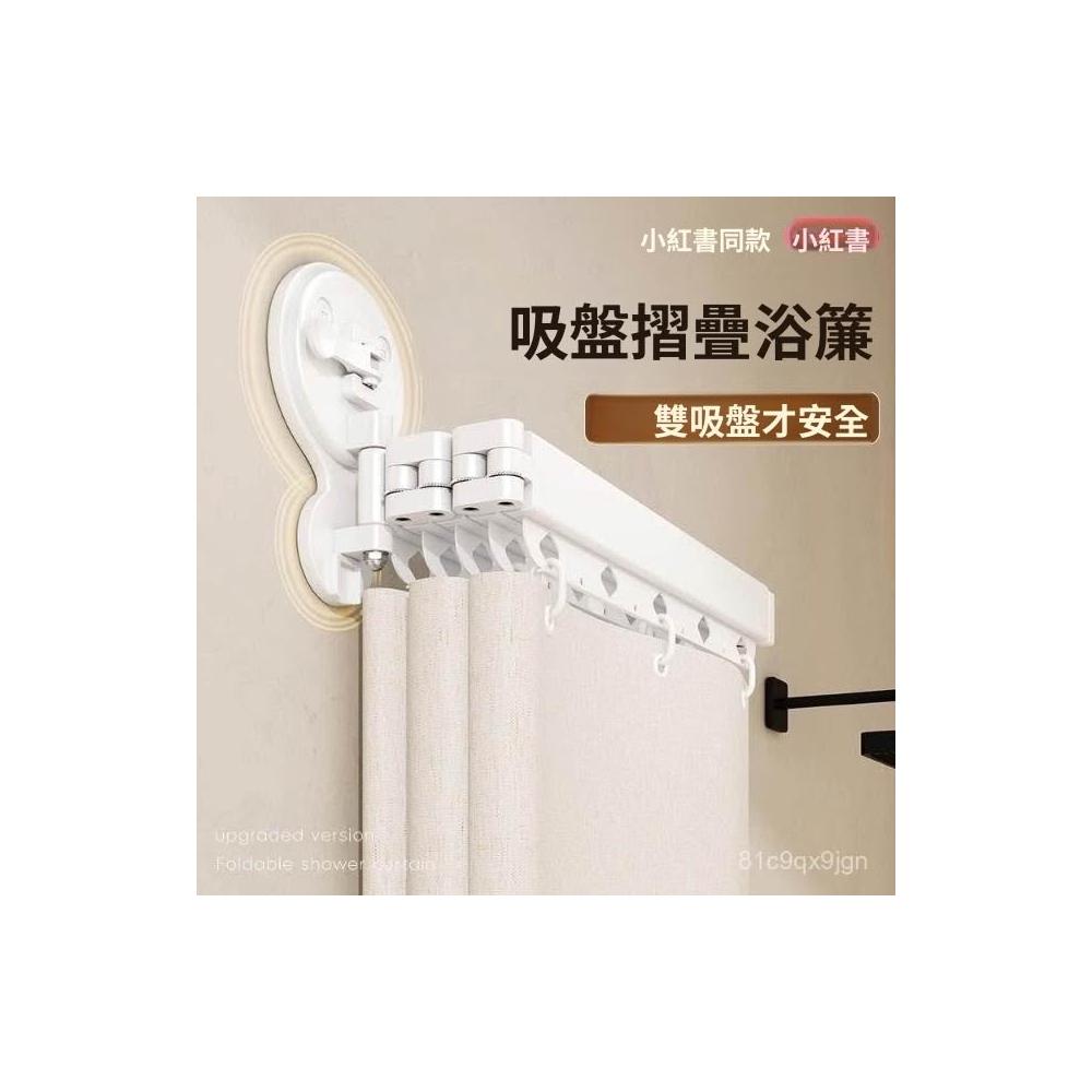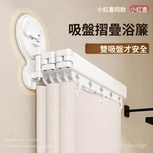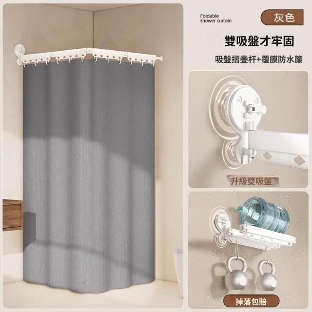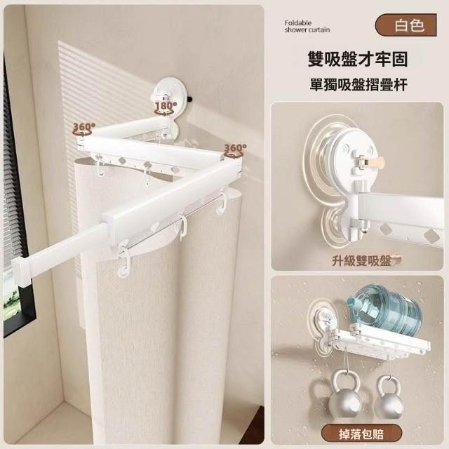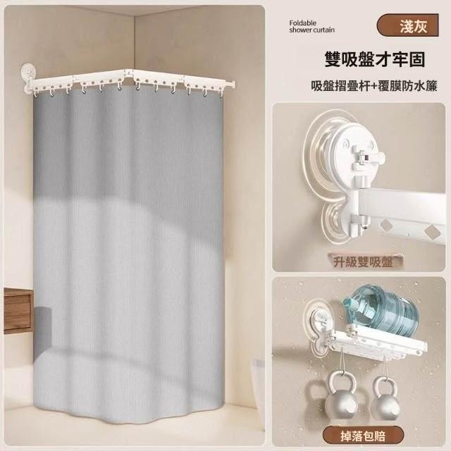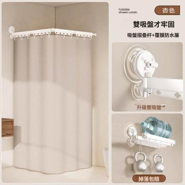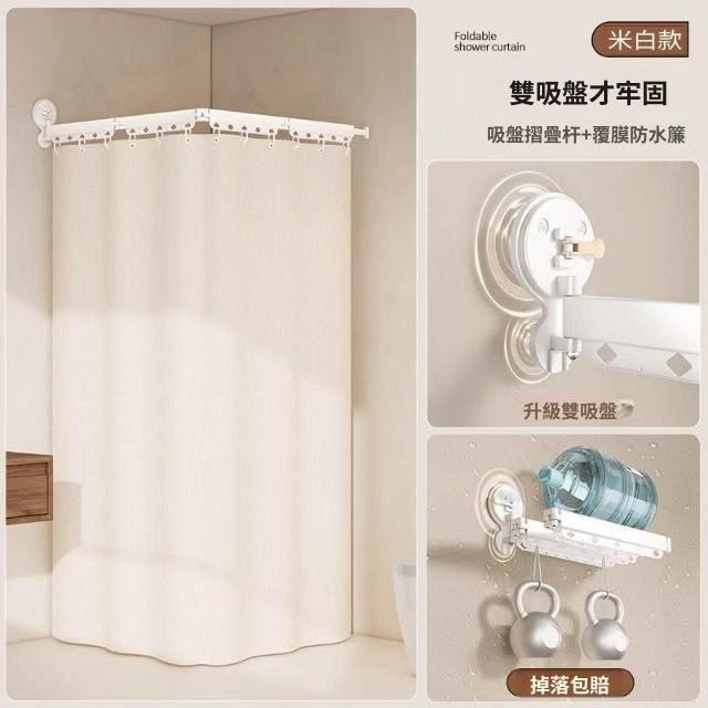 新款上市🔥免運🔥 磁吸折疊浴簾 門簾 衛生間浴室吸盤折疊浴簾套裝吸盤式浴簾桿防水防黴折疊仿亞麻浴簾 防水浴室簾 掛簾