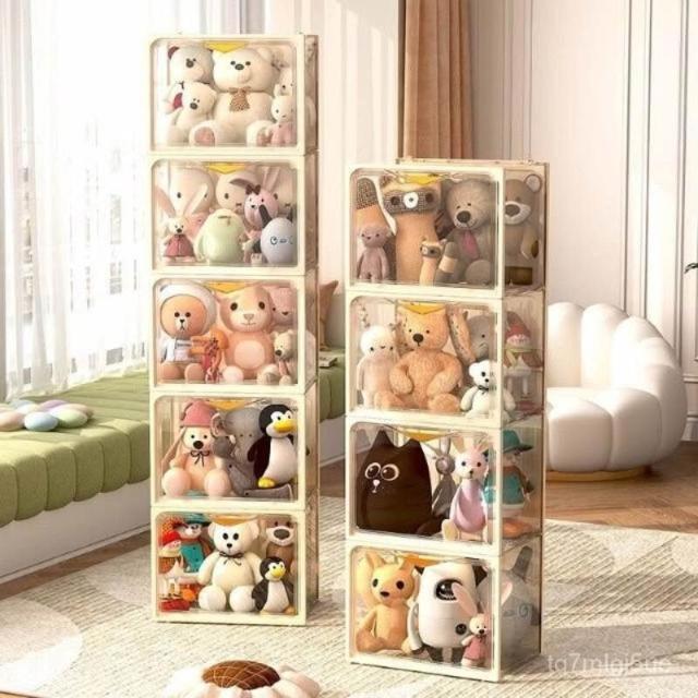 免運 玩具收納箱透明防塵布毛絨箱玩偶公仔盒收納神器展示架娃娃收納桶 娃娃收納櫃 展示櫃 收納盒