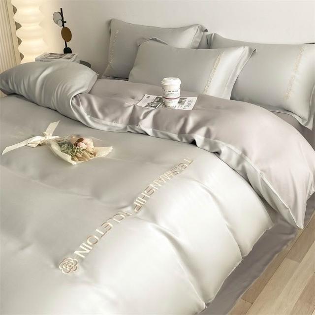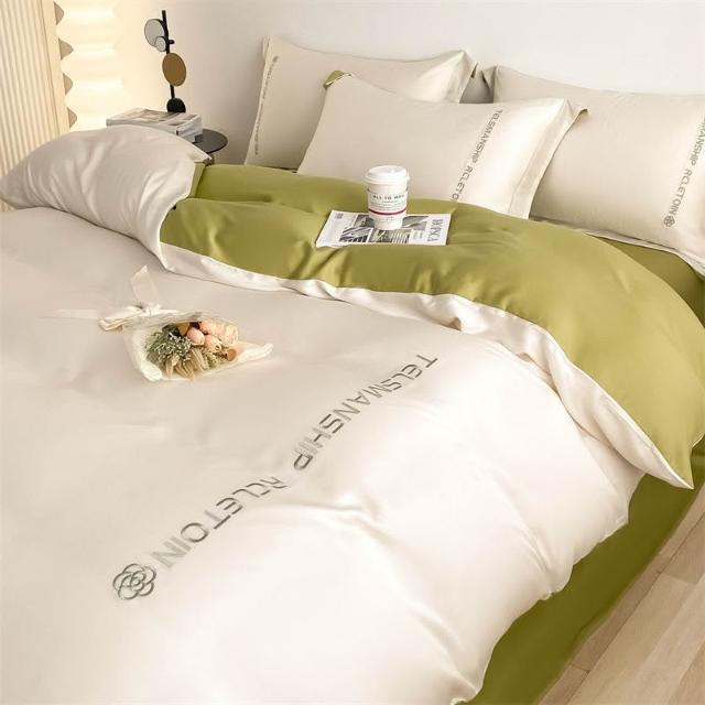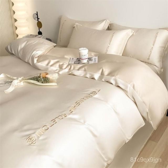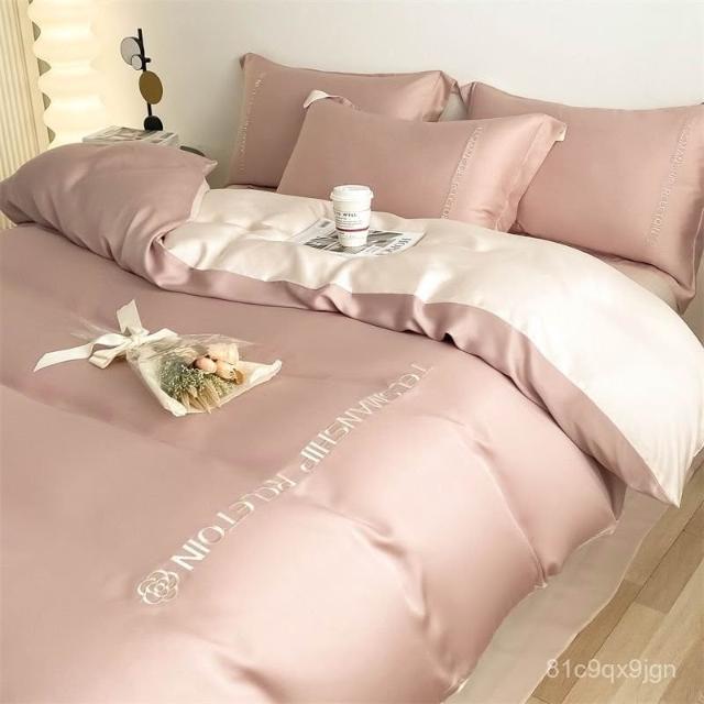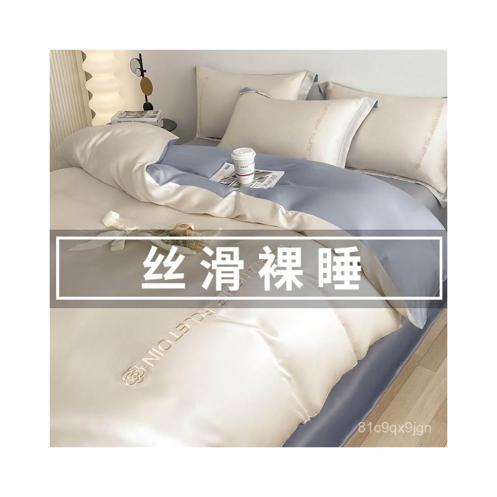免運免稅 四件套床組 純棉床包 簡約風刺繡款床單四件套冰絲床單被套夏天涼感學生宿捨床上三件套 被套 床組四件套 棉被套