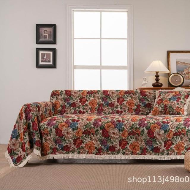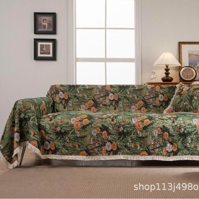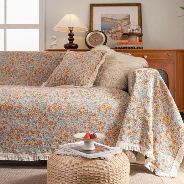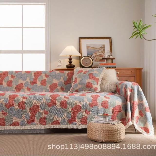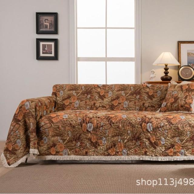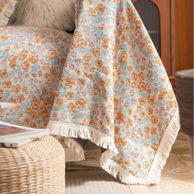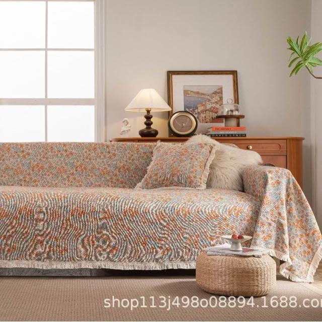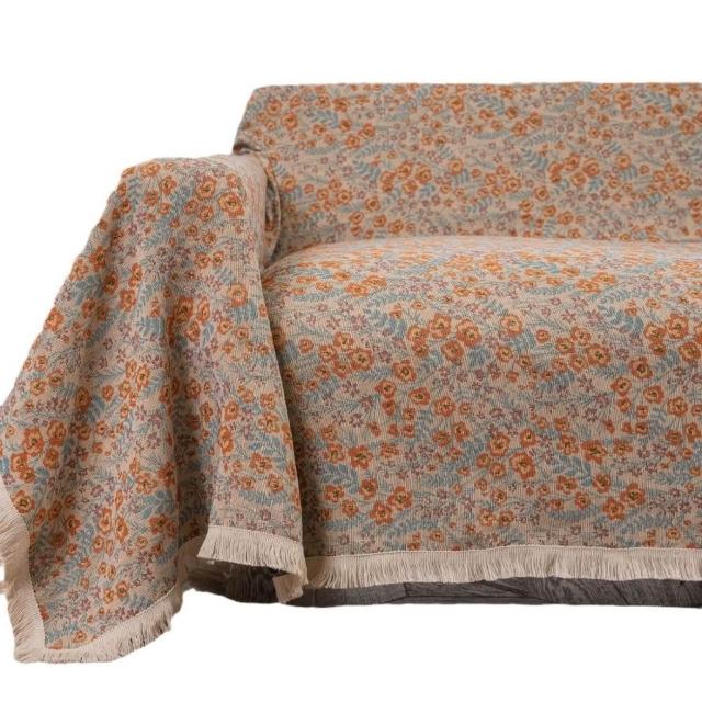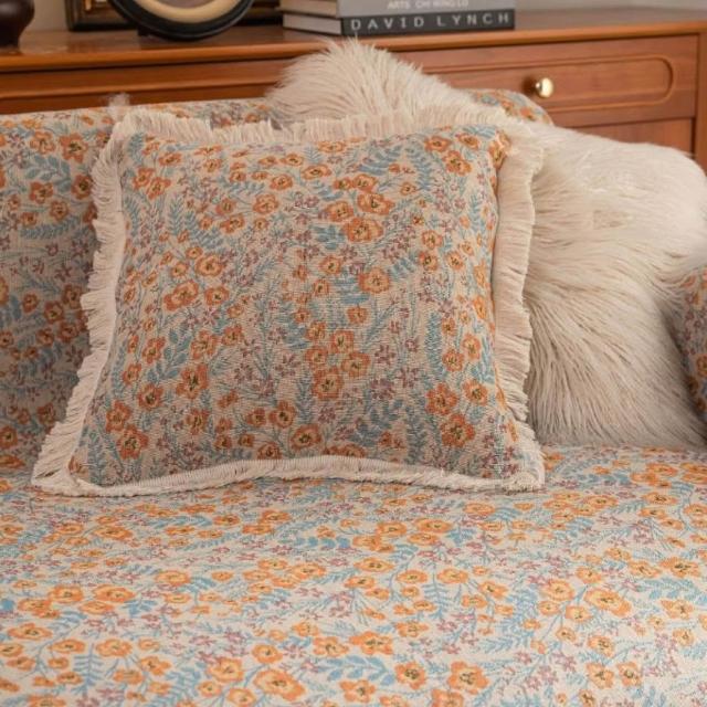 工廠直供小清新沙發墊橘色碎花提花沙發套四季通用防貓抓沙發蓋布