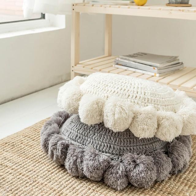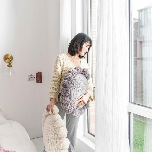 裕途家創意圓形球球抱枕 北歐設計手工毛線沙發靠墊坐墊純色靠枕