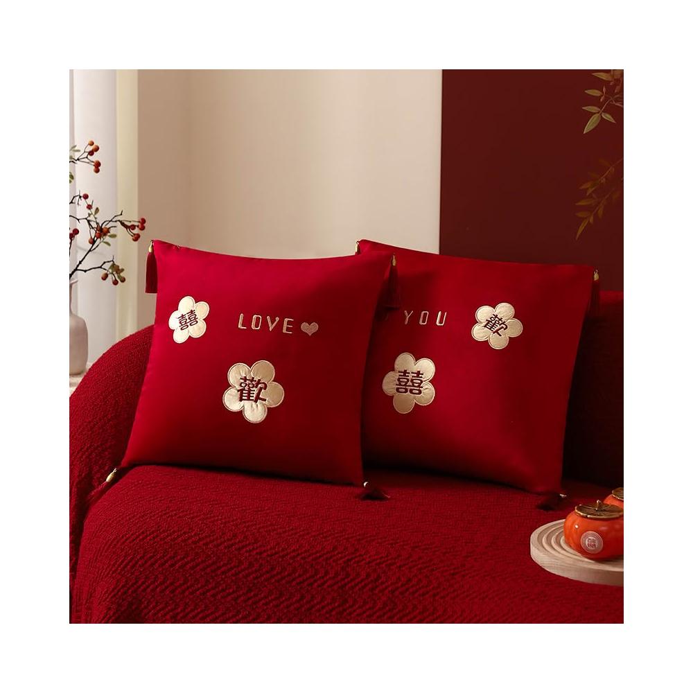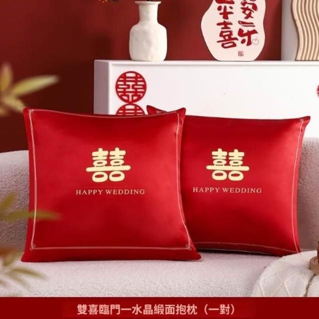 結婚喜字抱枕一對婚慶婚房佈置裝飾沙發靠枕婚禮新房創意新婚禮物