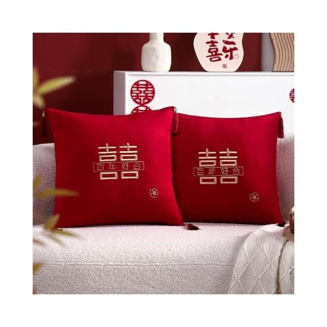 結婚喜字抱枕一對婚慶婚房佈置裝飾沙發靠枕婚禮新房創意新婚禮物