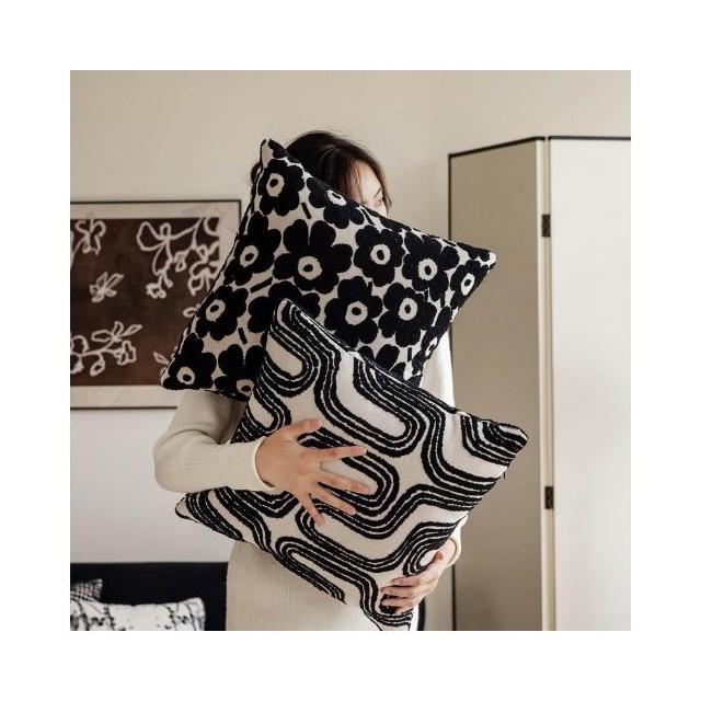 2024新款抱枕中古風黑白時尚沙發靠枕床頭靠墊民宿軟裝靠包可拆洗