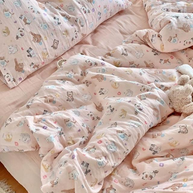 工廠直發A類全棉雙層紗四件套純棉紗布學生宿舍三件套小清新裸睡