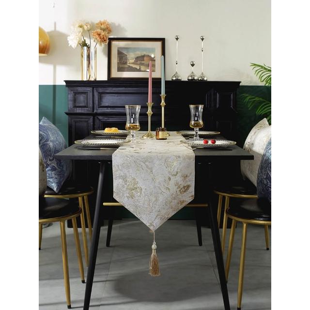 桌旗輕奢高端餐桌桌布中間長條茶几蓋布北歐美式高級感餐旗法式