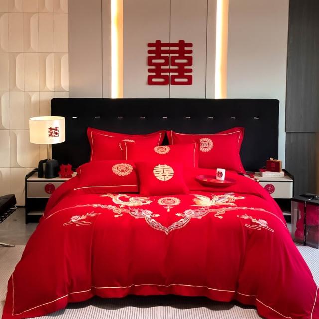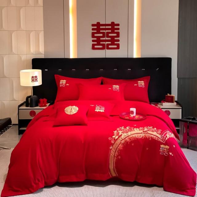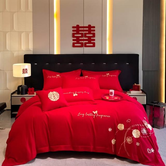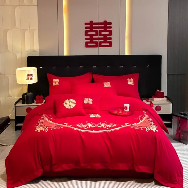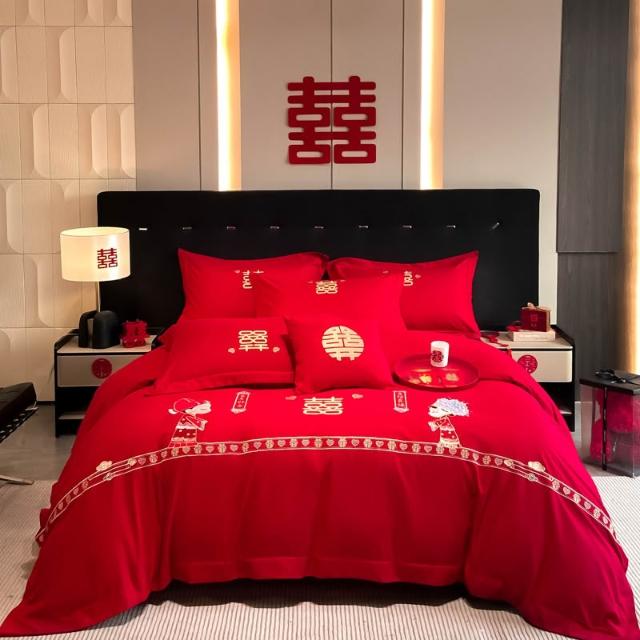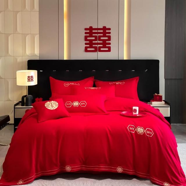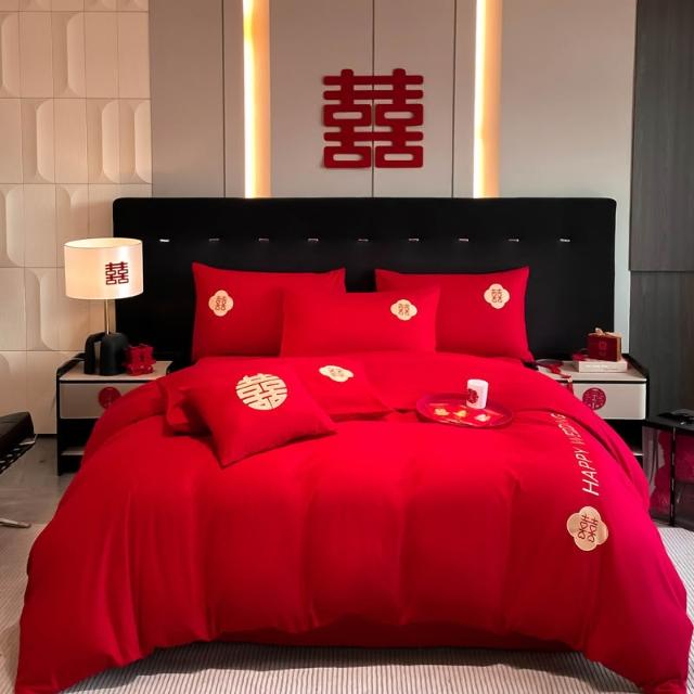 結婚四件套 大紅色婚嫁 新婚床上用品 婚房陪嫁被套 床單婚禮被罩