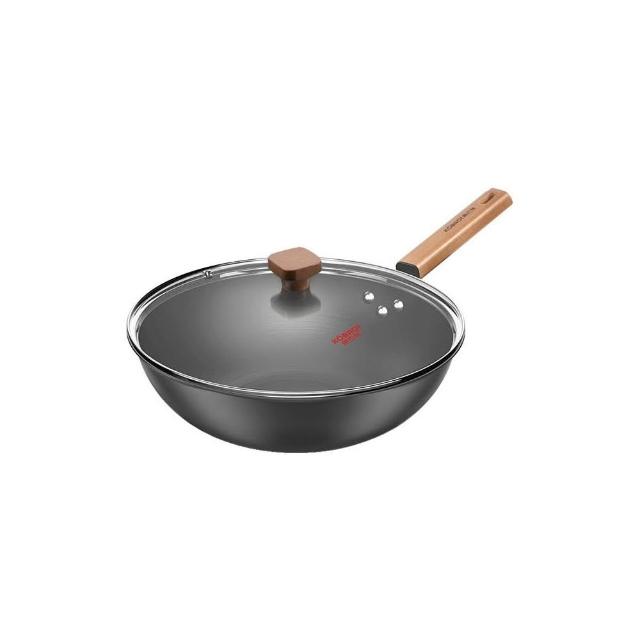 康巴赫精鐵炒鍋無塗層鑄鐵鍋家用防銹炒菜鍋圓底老式鐵鍋批發