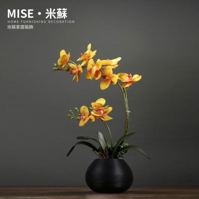 中式仿真蝴蝶蘭花藝套裝擺件創意客廳餐桌假花桌面小盆栽裝飾擺設