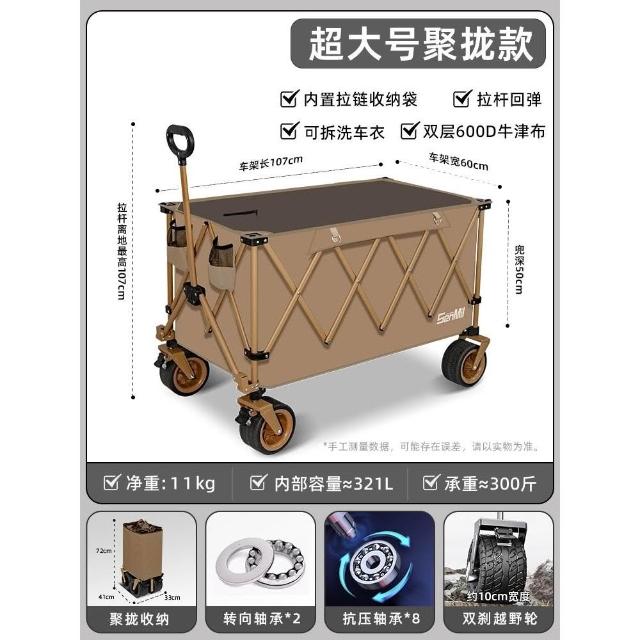 森米樂露營車超大號戶外野營旅行擺攤可折疊特大加長聚攏款手推車