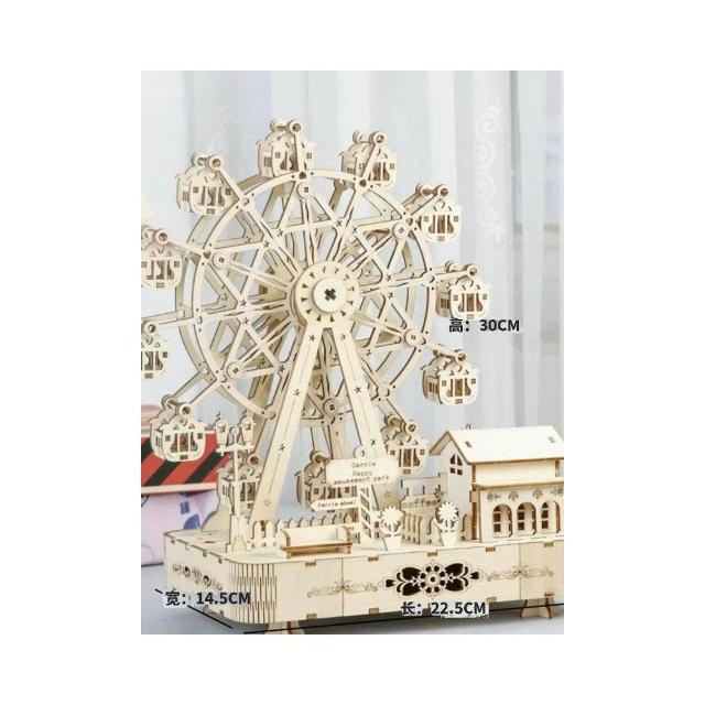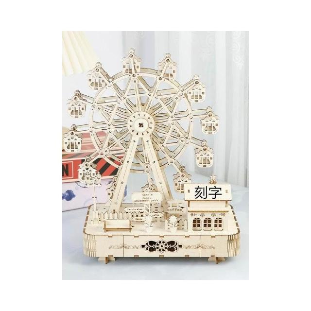 音樂盒 木制diy手工音樂盒 音樂盒 木制機械旋轉摩天輪 木質拼裝生日禮物女