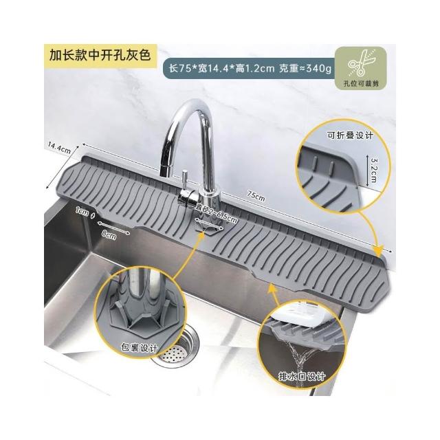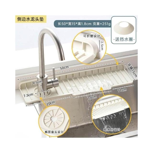 水龍頭矽膠可折邊擋水墊 廚房水槽防濺水斜坡 瀝水墊 浴室臺面置物墊