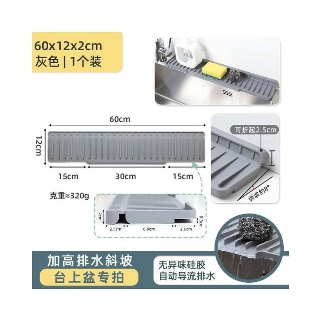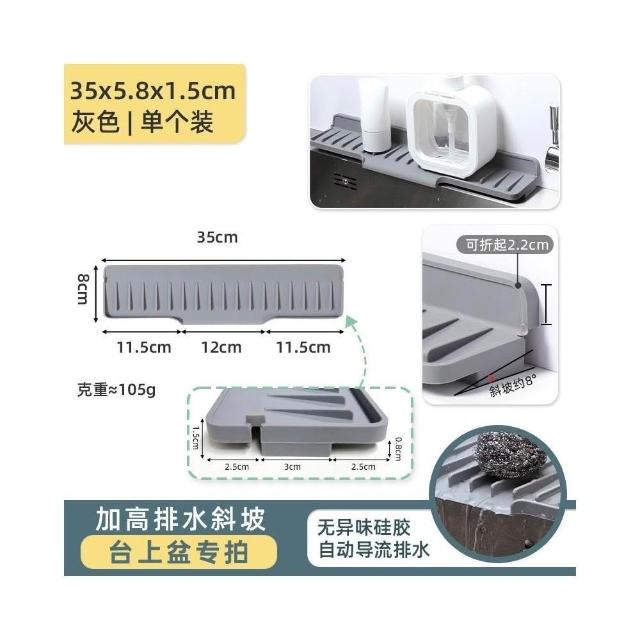 水龍頭矽膠可折邊擋水墊 廚房水槽防濺水斜坡 瀝水墊 浴室臺面置物墊