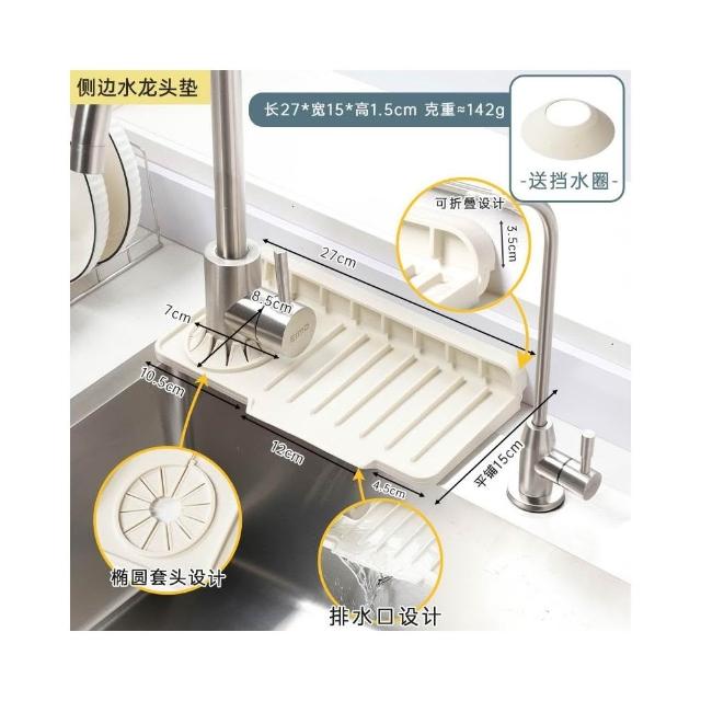 水龍頭矽膠可折邊擋水墊 廚房水槽防濺水斜坡 瀝水墊 浴室臺面置物墊