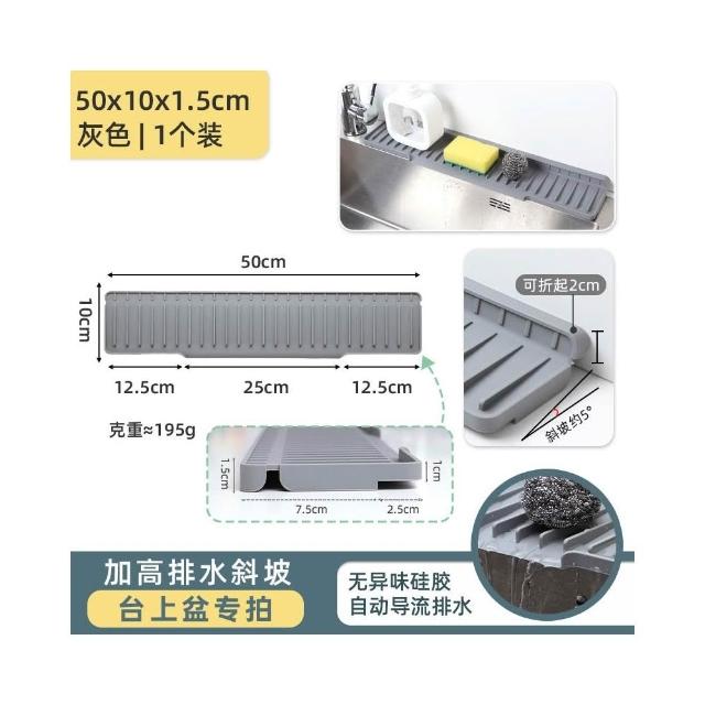 水龍頭矽膠可折邊擋水墊 廚房水槽防濺水斜坡 瀝水墊 浴室臺面置物墊