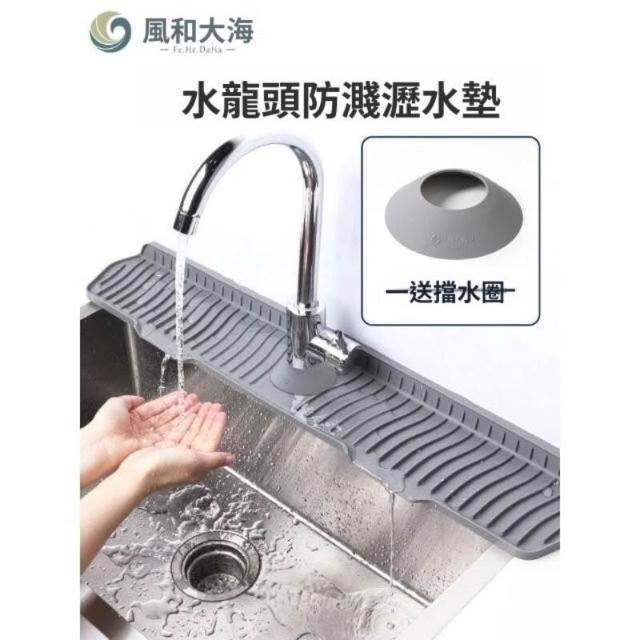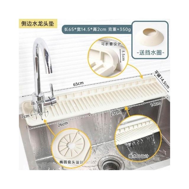 水龍頭矽膠可折邊擋水墊 廚房水槽防濺水斜坡 瀝水墊 浴室臺面置物墊
