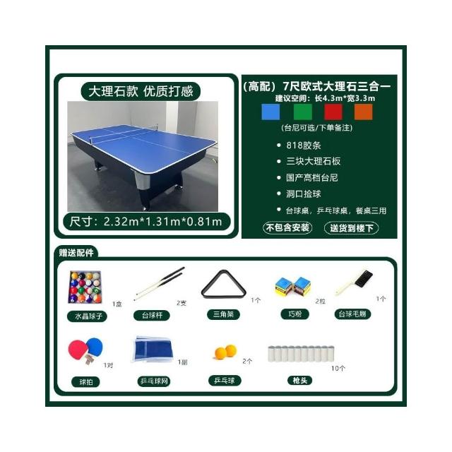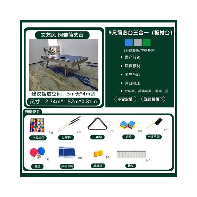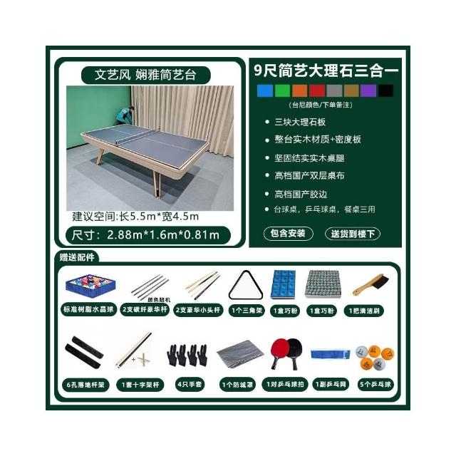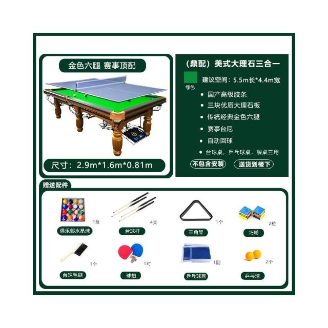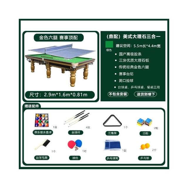 檯球桌 標準型多功能三合一商用美式黑八桌球臺 成人家用乒乓球球廳