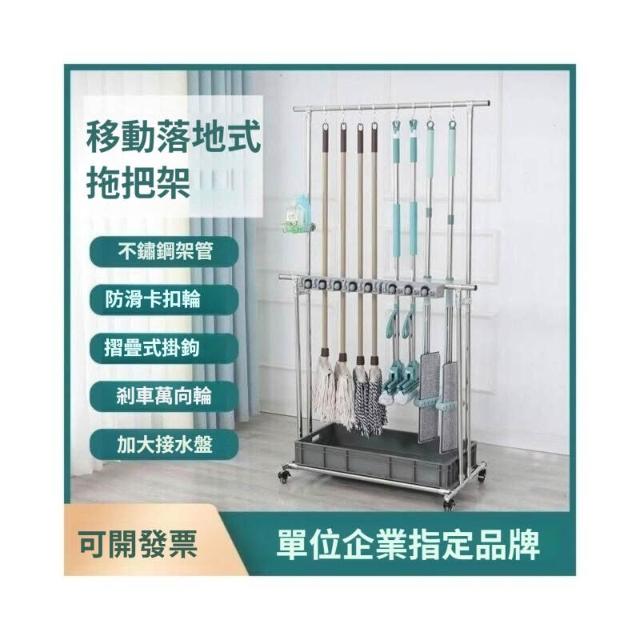 耐用不銹鋼置物架 不銹鋼拖把架可移動落地式掛拖把掃把固定架清潔工具收納置物架子 JDXR