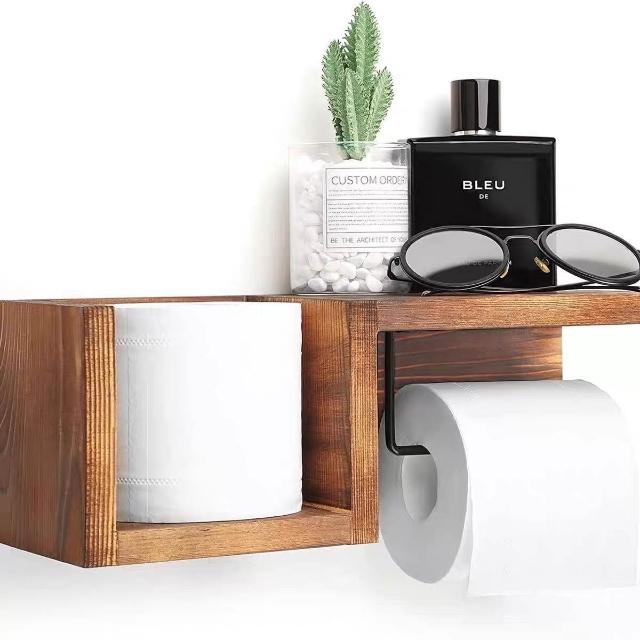 紙巾架 毛巾架 木質衛生整理架紙架 卷紙架 壁掛式帶隔板收納架