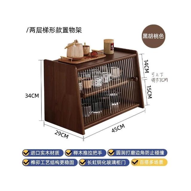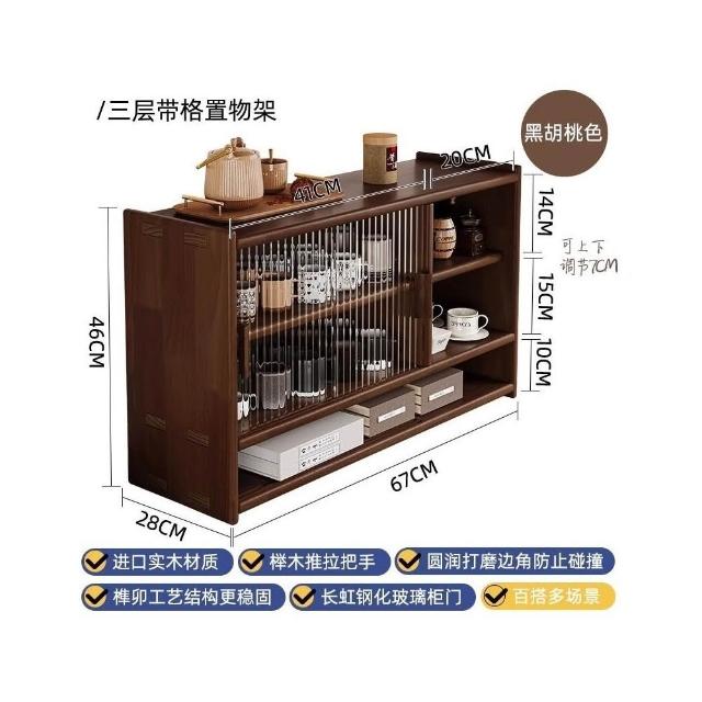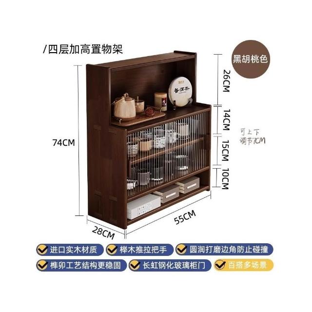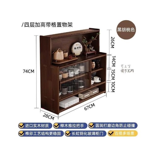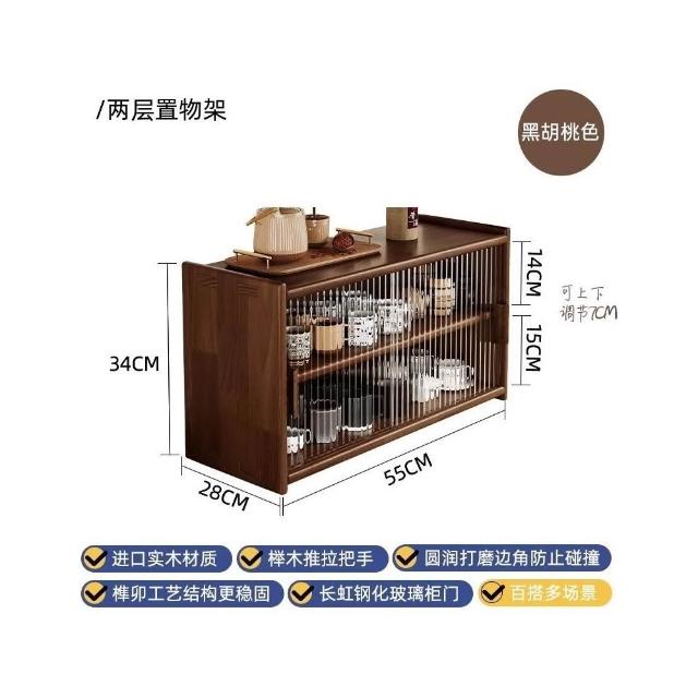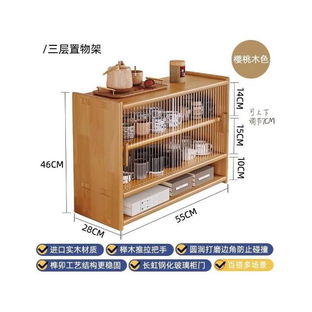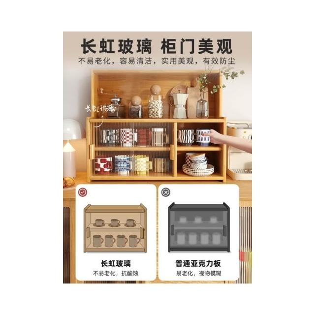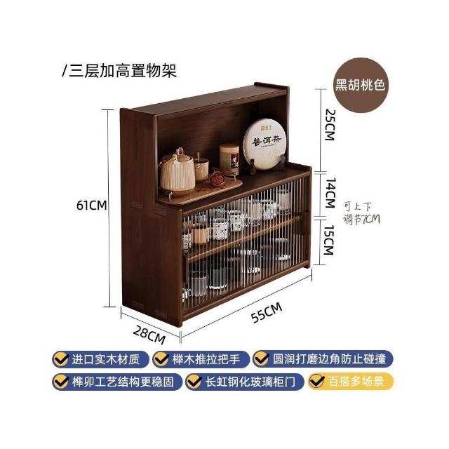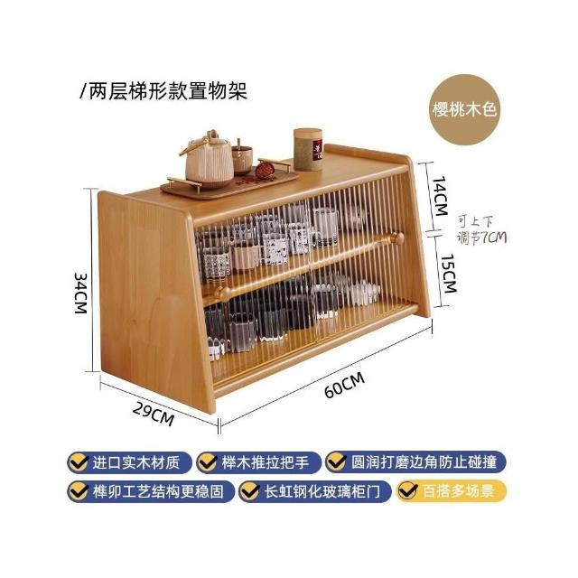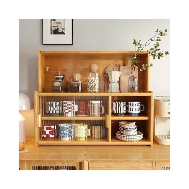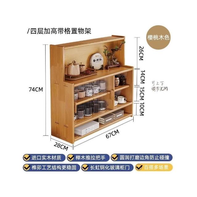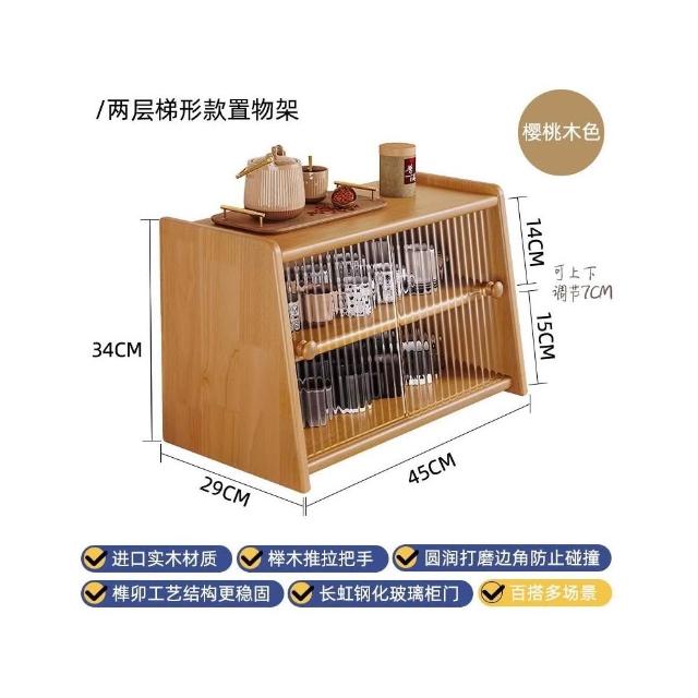 實木桌上收納櫃 防塵置物架 杯架 小型帶玻璃櫃門邊櫃 多層茶具儲物架