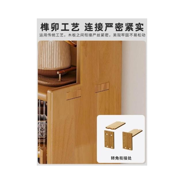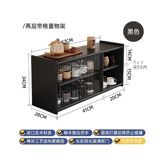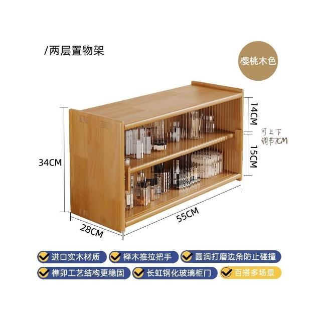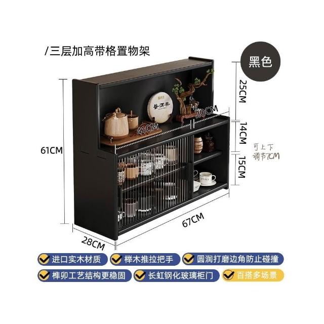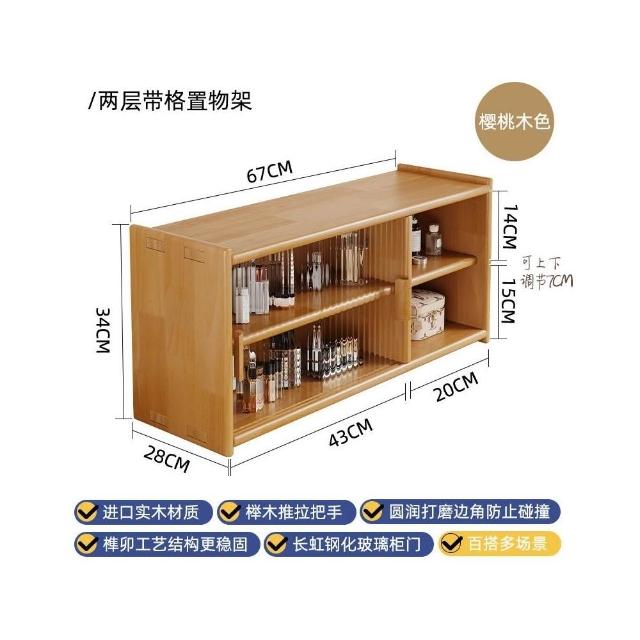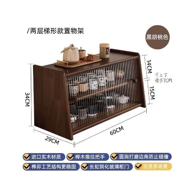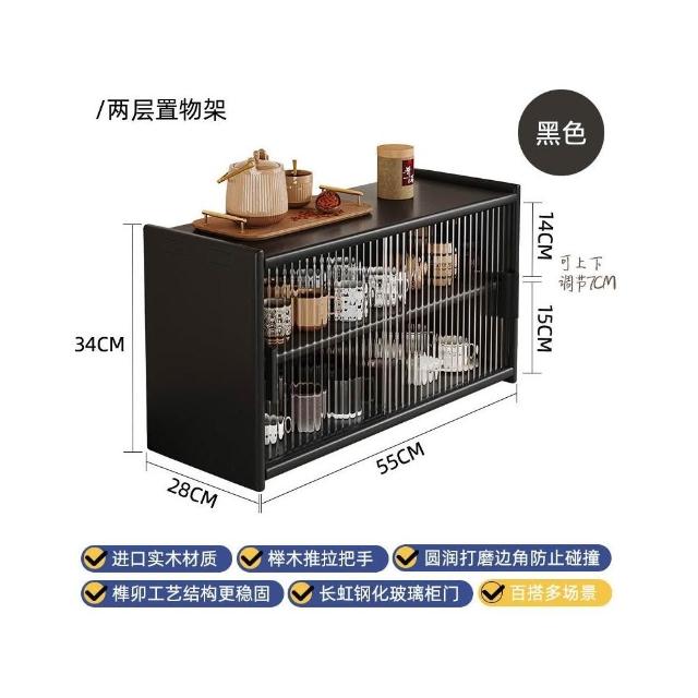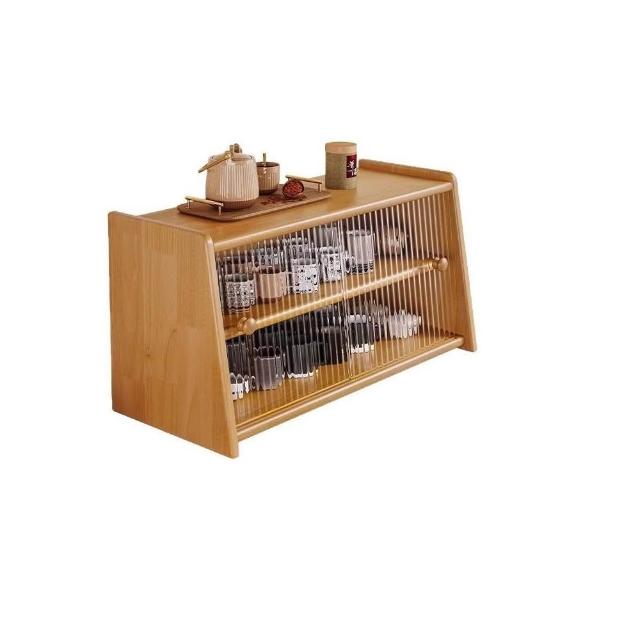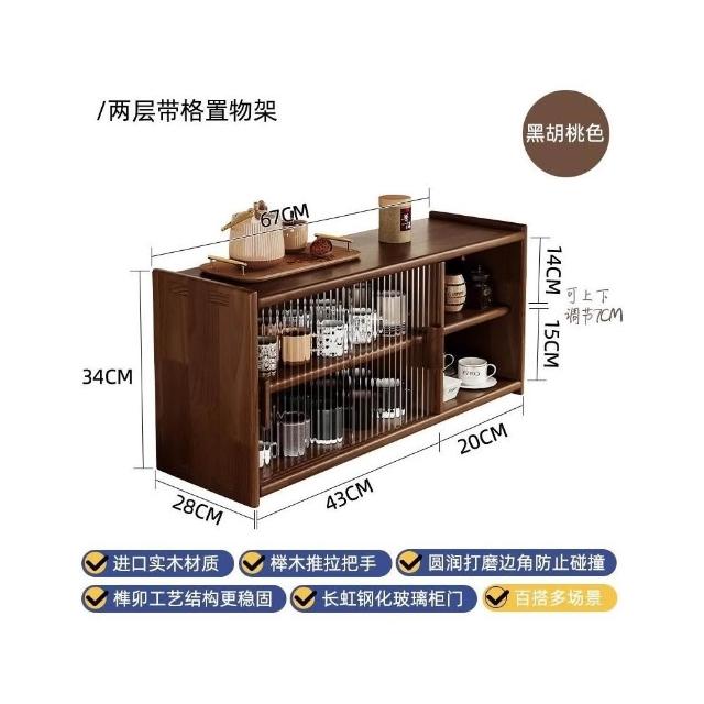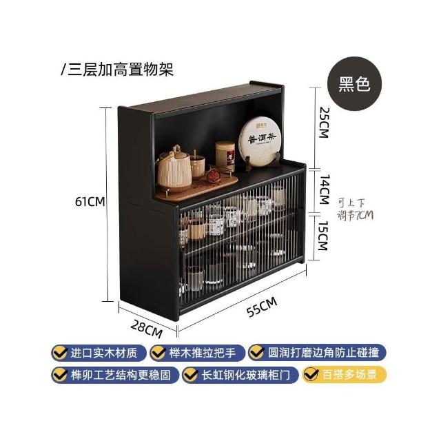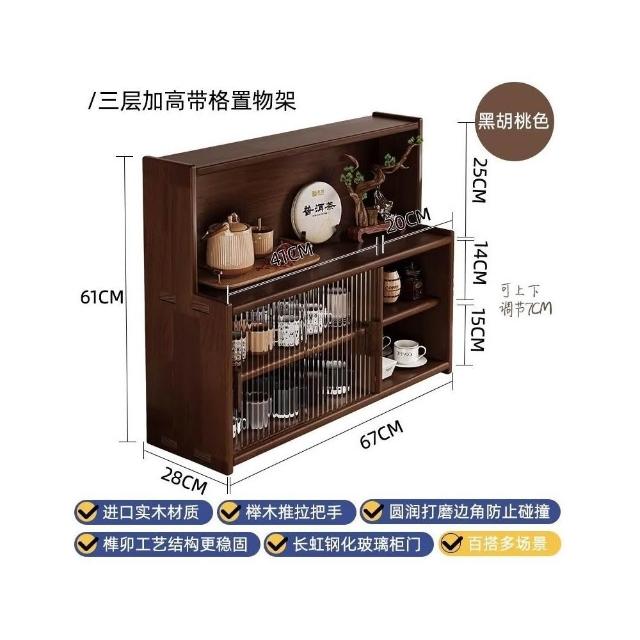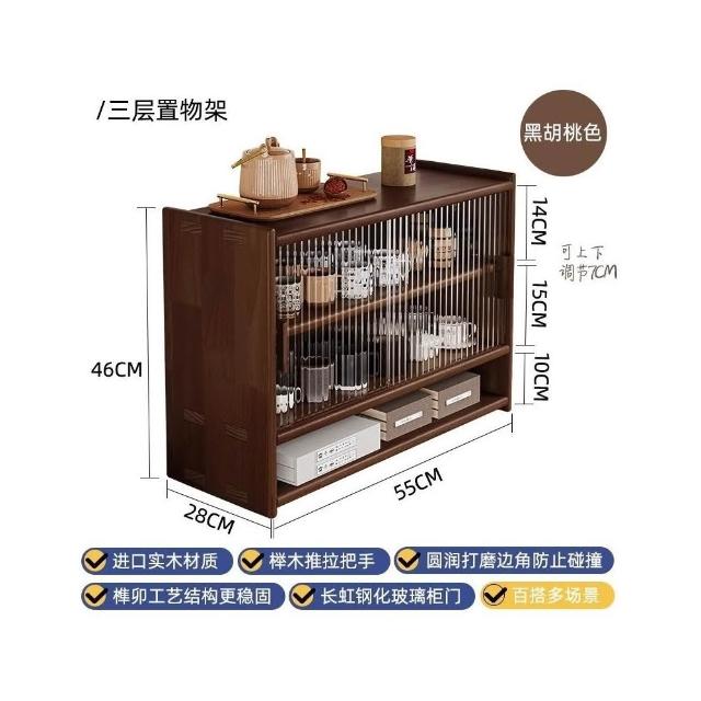 實木桌上收納櫃 防塵置物架 杯架 小型帶玻璃櫃門邊櫃 多層茶具儲物架