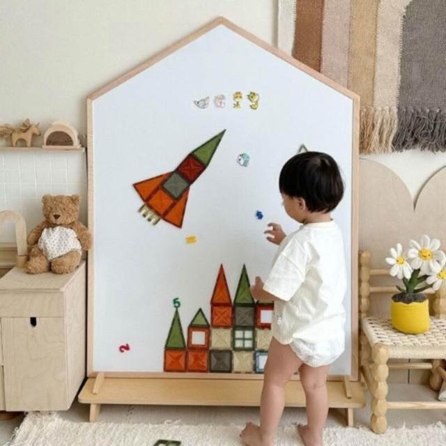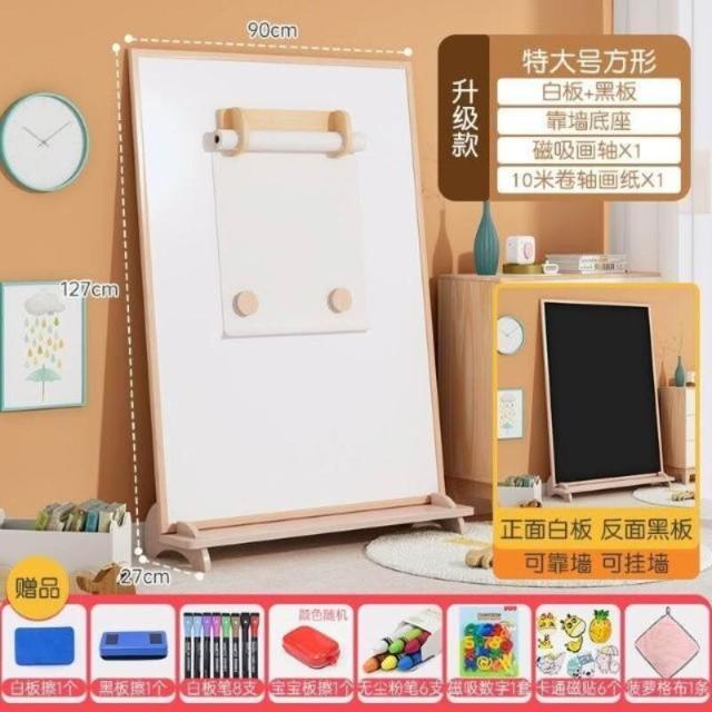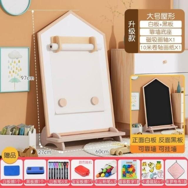 兒童畫板塗鴉家用繪畫磁吸白板寶寶實木黑板支架式雙面
