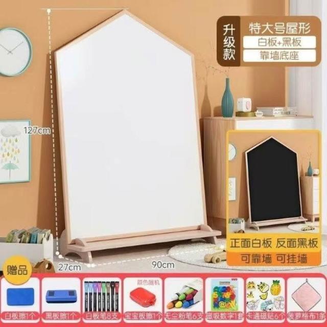 兒童畫板塗鴉家用繪畫磁吸白板寶寶實木黑板支架式雙面
