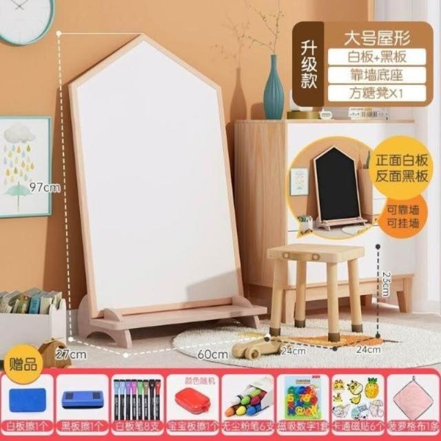 兒童畫板塗鴉家用繪畫磁吸白板寶寶實木黑板支架式雙面