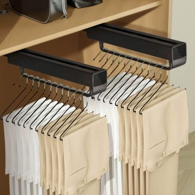 褲架伸縮多功能家用衣櫃褲抽衣櫥內置抽拉伸縮褲架頂裝褲子收納架