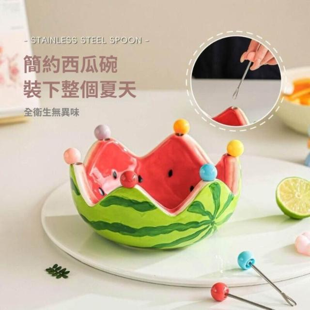 高顏值西瓜水果叉家用客廳茶幾水果盤碗不鏽鋼創意可愛小叉子套裝