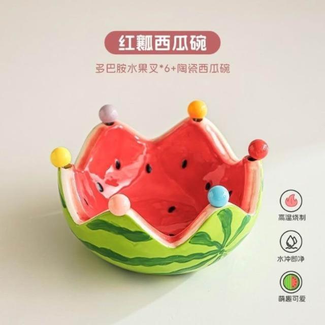 高顏值西瓜水果叉家用客廳茶幾水果盤碗不鏽鋼創意可愛小叉子套裝