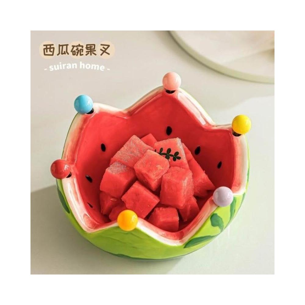 高顏值西瓜水果叉家用客廳茶幾水果盤碗不鏽鋼創意可愛小叉子套裝