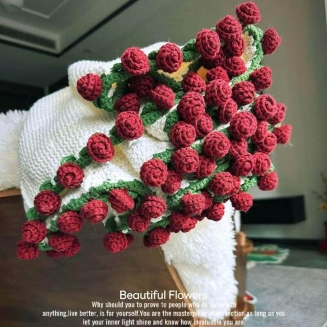 毛毯花束 diy 材料包玫瑰花毯鉤織毛線鉤花編織自製女友情人節禮物